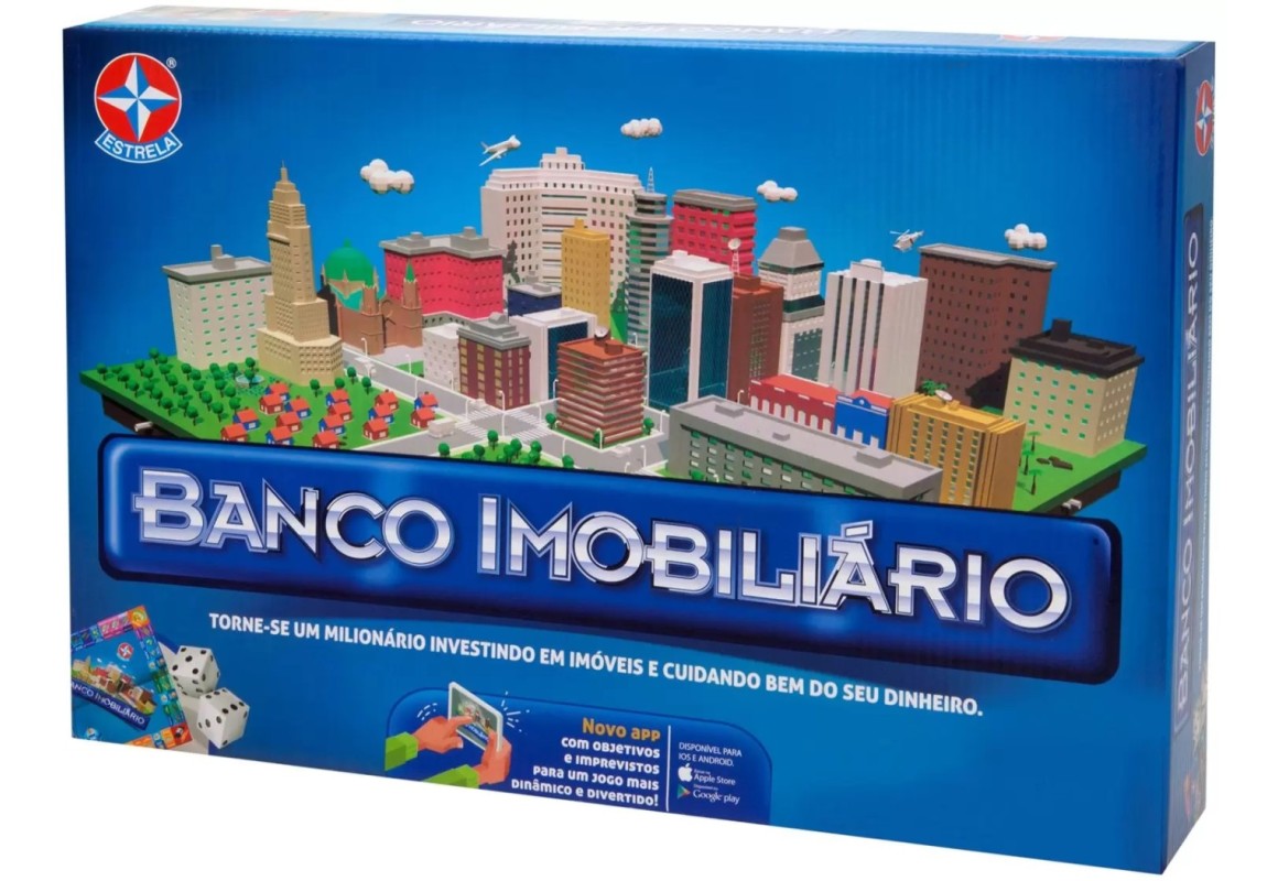 Jogo de Tabuleiro Banco Imobiliário - EstrelaO Jogo Banco Imobiliário é um dos jogos mais famosos! Tem como objetivo comprar vários imóveis e falir seus adversários! O último que ainda tiver dinheiro vence. Com a duração média das partidas sendo de 2 horas. Recomendado para crianças a partir de 8 anos de idade devido aos papéis. Além do Tabuleiro, dados, notas, etc... ainda possui um aplicativo inovador com objetivos e imprevistos para dar mais imersão na brincadeira tornando o jogo mais dinâmico e divertido.
