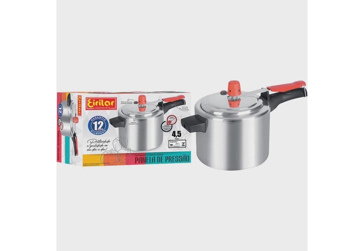 Na hora do preparo de nossas refeições diárias, contar com utensílios de qualidade pode fazer toda diferença, tanto no sabor da comida quanto na praticidade do preparo. Por isso, vale a pena conferir a Panela de Pressão Polida da Eirilar. Trata-se de uma panela feita de alumínio, com revestimento externo polido e capacidade para 4,5 litros. Em uma charmosa cor prata, essa panela possui fechamento interno com borracha de vedação e válvula de silicone que levam muita segurança para o manuseio no dia a dia.