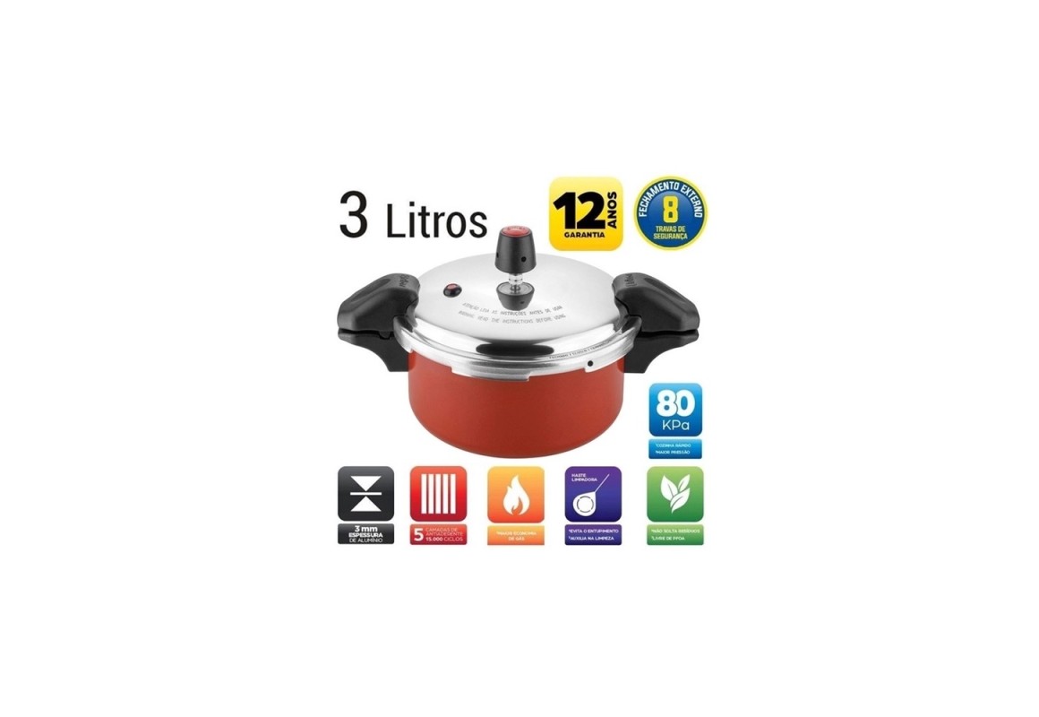 Panela de Pressão 3 litros Travamento Externo Bordô Com Alça Eirilar