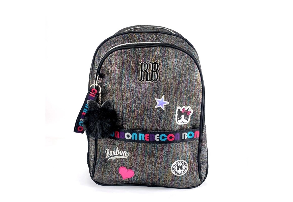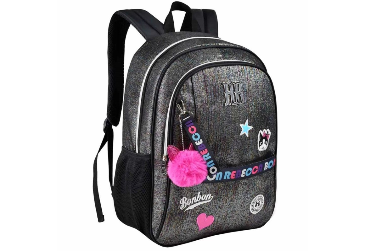 Mochila Escolar Rebecca Bonbon Clio Style RB3120. Confeccionada com material brilhoso e apliques de patches e bordados no painel frontal, com gorgurão personalizado. Acompanha chaveiro personalizado. Material de alta durabilidade e qualidade. Puxadores e logomarca RB de metal proporcionam grande harmoniaCostas acolchoadasAcompanha chaveiro personalizadoCom compartimento para laptopReferencia: RB3120